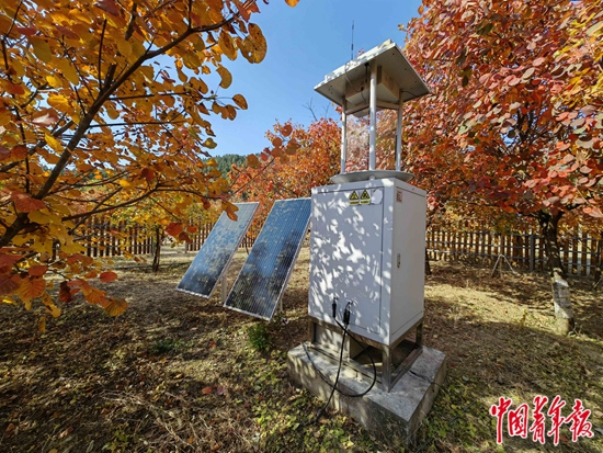 诸如生态系统监测塔这类“黑科技”设备在林场中还有不少,由太阳能电池板提供电量的复合型林业有害生物监测系统便是其中之一。这台“奇形怪状”的设备可以通过光对林业害虫进行诱导,并自动采集“落网”害虫的图像等信息,接着自动将数据传输到服务器,甚至还能自动烘干保存样本。又如外形酷似集装箱的生态系统环境质量监测系统,它可以监测环境中一氧化氮(NO)、二氧化氮(NO2)、二氧化硫(SO2)、细颗粒物(PM2.5)、可吸入颗粒物(PM10)等的浓度,同时监测大气负氧离子含量。“十三陵林场生态系统监测站能够获取生态环境和生物多样性监测数据,直观地展示林区生态系统功能信息,为我们形成一个强大的后台数据库,由这个数据库形成的报告,可以更科学地指导我们的工作,让我们的决策更精确。我觉得这是现在的林场和从前最不一样的地方。”李虹臻说。