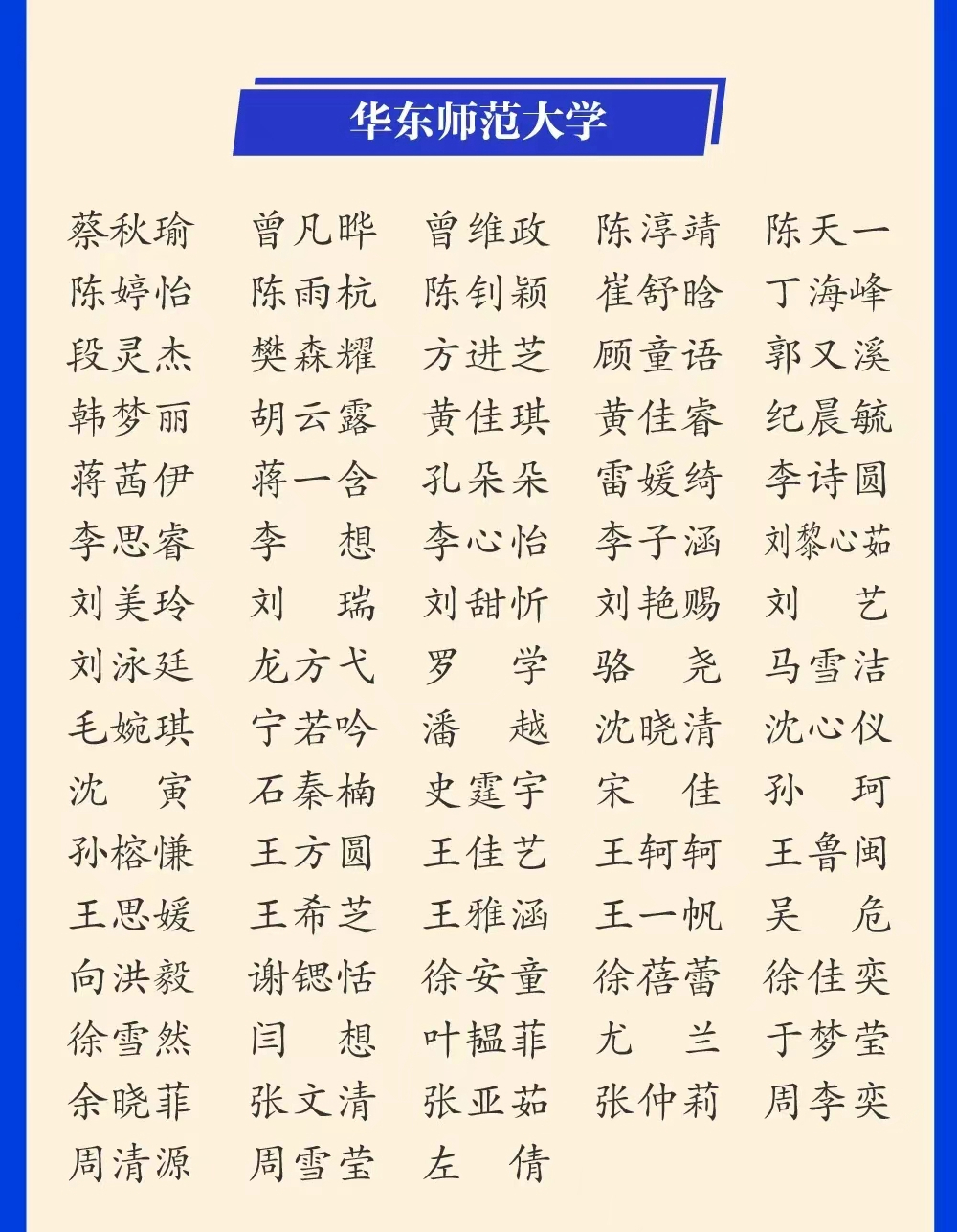 第五届华东师大“小叶子”全名单