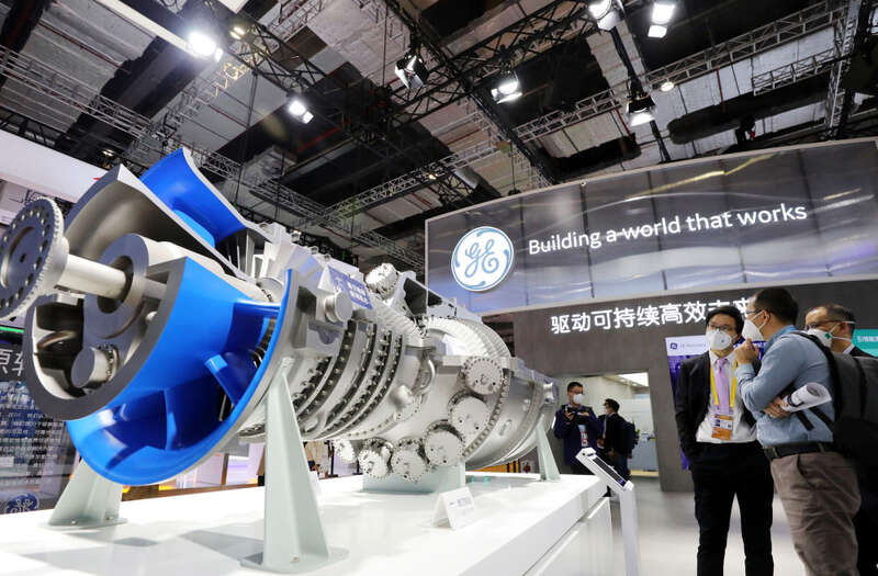 这是2022年11月6日在第五届进博会上拍摄的美国通用电气公司展台。新华社记者 方喆 摄