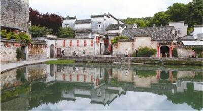 游客在世界文化遗产地安徽黟县宏村游玩。