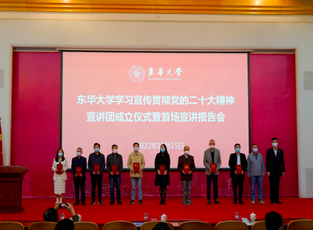 除成立专家宣讲团外,东华大学还组织关工委“银发”讲师团、“学习进行时”大学生理论宣讲团、“领雁先锋”学生理论宣讲团等近20支师生宣讲团,构建全方位、多层次宣讲矩阵,通过对象化、分众化、互动化的“靶向”宣讲,把党的二十大精神讲清楚讲透彻,让师生听得懂、能领会、可落实。
