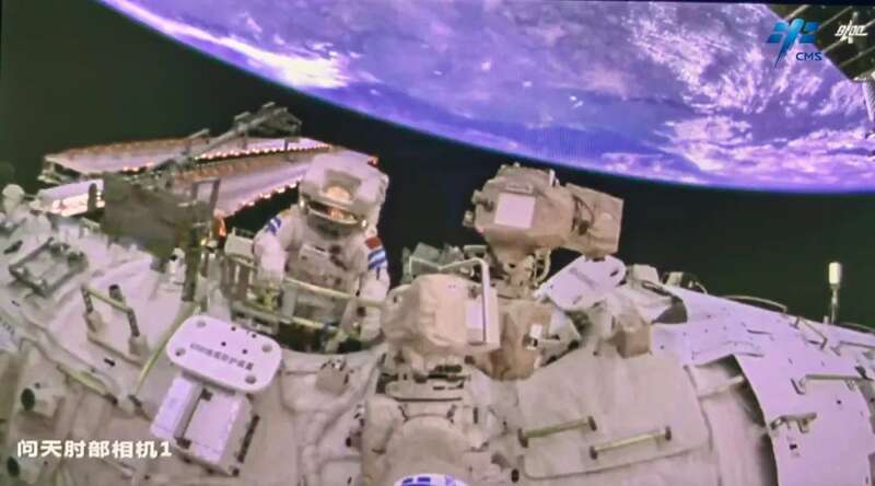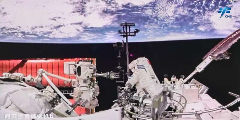 航天员陈冬、蔡旭哲在舱外作业。中国载人航天工程办公室供图
