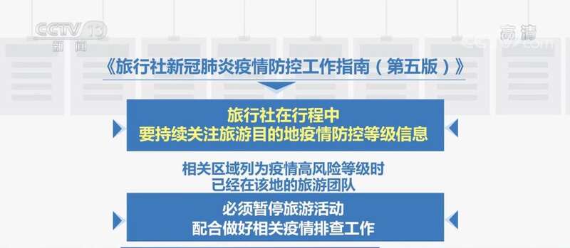《旅行社新冠肺炎疫情防控工作指南(第五版)》中明确,旅行社在行程中要持续关注旅游目的地疫情防控等级信息。相关区域列为疫情高风险等级时,已经在该地的旅游团队,必须暂停旅游活动,配合做好相关疫情排查工作。