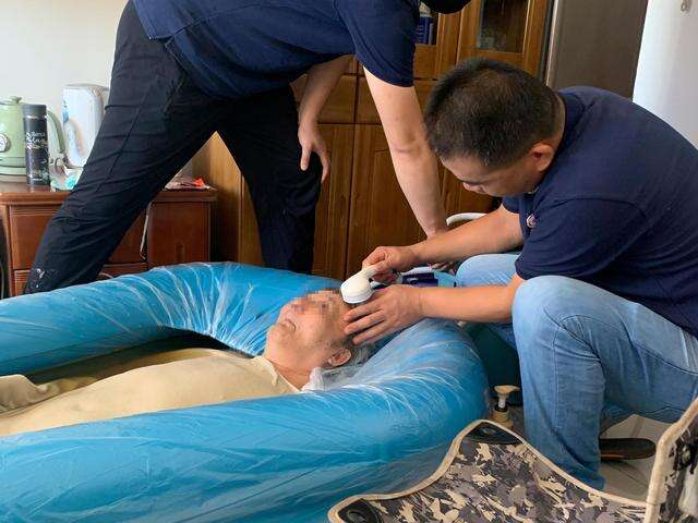 助浴师唐博记得,有老人第一次躺进橡胶浴床,手“一直哆嗦”;有位老人直接落了眼泪。“我爸太激动了”,老人的女儿在一旁解释。