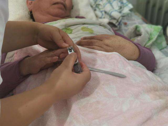 洗完澡,这趟服务接近尾声了。陈耀娟躺在床上,王玉笑给她剪手指甲。陈耀娟突然发话了,“你这个弄得好叻。”