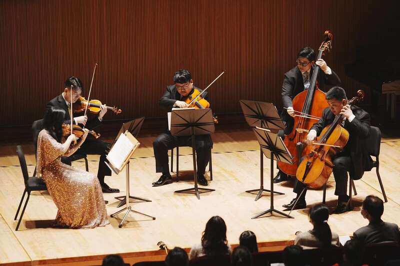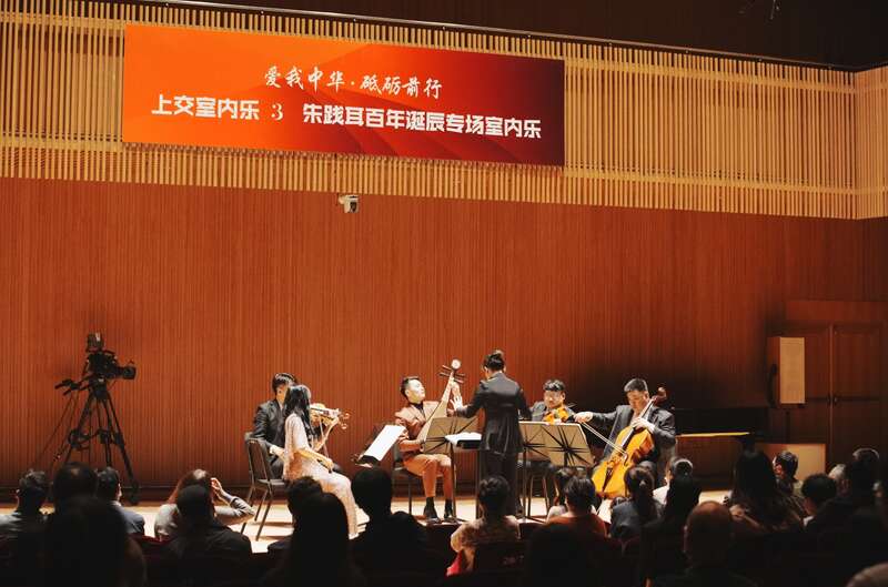 11月18日,由上海交响乐团成员组成的北极星四重奏,携手琵琶演奏家刘嘉,钢琴家王逸佳,以及低音提琴演奏家钱博文,指挥家张洁敏,演出朱践耳的室内乐作品。