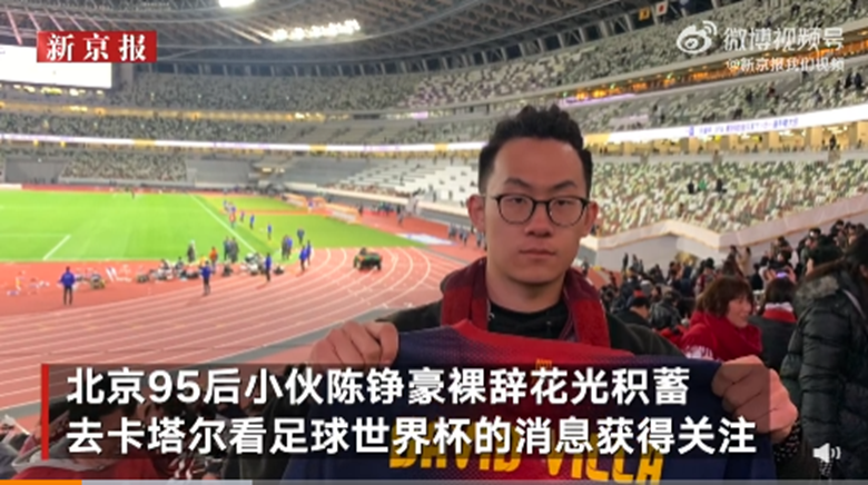 虽说热情的球迷到处都有,但是,90后小伙陈铮豪的做法依然令人惊叹。他将自己对足球的热爱表达为一场“说走就走的世界杯之旅”,选择辞去互联网广告相关工作,亲赴卡塔尔看球。他表示:作为阿根廷球员梅西的铁杆粉丝,他从2005年就开始看梅西的比赛直至今日,尽管世界杯之旅几乎会花光他此前的积蓄,但他还是决定这样去做。