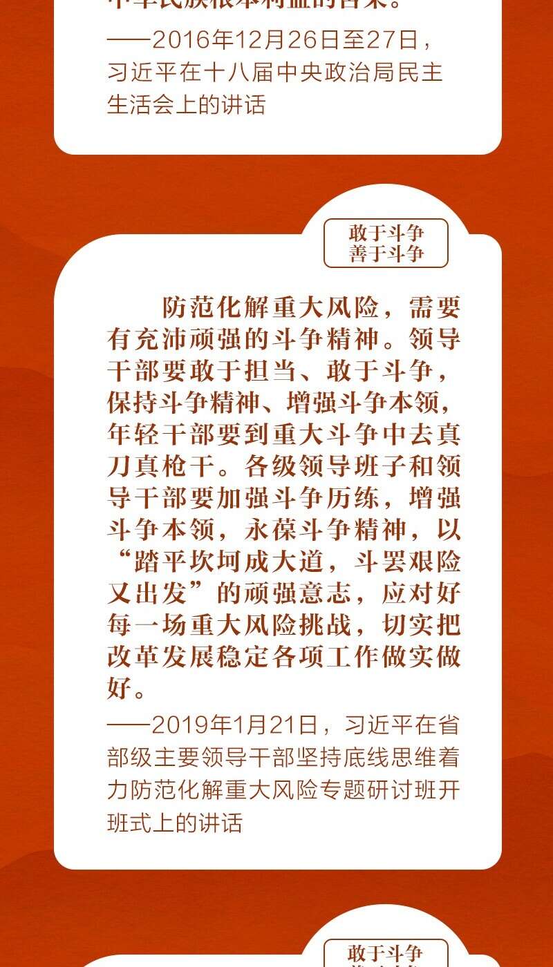 敢于斗争是战胜风险挑战的前提,善于斗争是战胜风险挑战的保障。党的十八大以来,习近平总书记在不同场合多次强调要“敢于斗争”“善于斗争”。今天,我们梳理部分有关重要论述,与您一同学习。