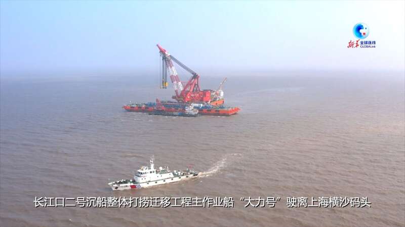 两个多月前,长江口二号沉船整体打捞迁移工程主作业船“大力号”驶离上海横沙码头,前往长江口二号古船遗址现场。