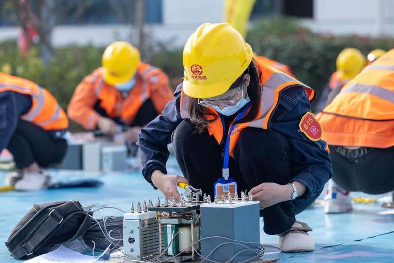 中国青年报客户端合肥讯(方乃松 张智 中青报·中青网记者 王海涵)随着裁判吹响发令哨,年轻选手迅速行动,仔细用烙铁将一根根阻燃软线焊接起来。一旁场地上,选手们席地而坐,通过工具预配信号变压器和电阻等,这些技术和成品组成了铁路道岔旁和站房里的信号设备。