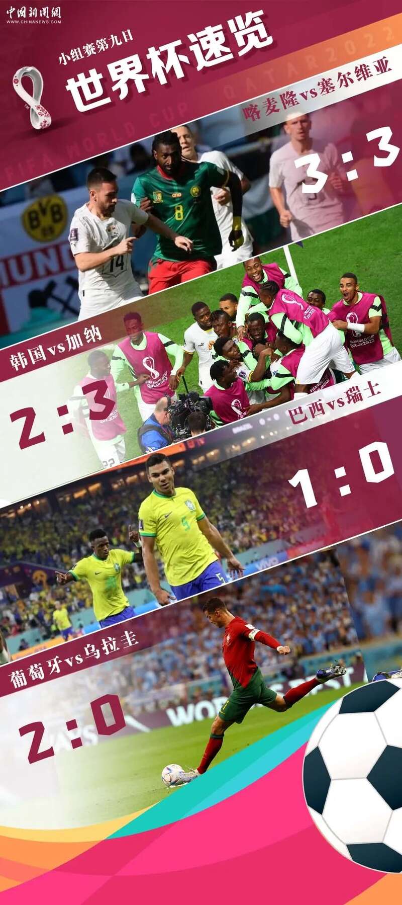中新网北京11月29日电 北京时间昨夜今晨,卡塔尔世界杯进入小组赛第九日,共展开四场角逐。继卫冕冠军法国队后,巴西队与葡萄牙队也双双提前一轮晋级十六强。