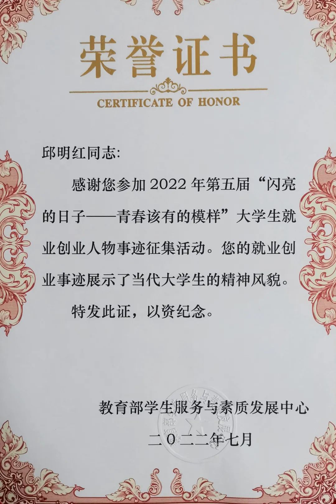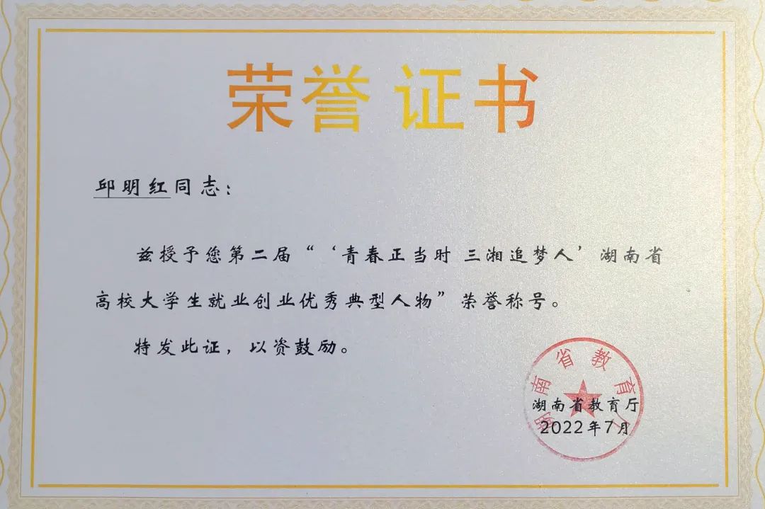 2022年6月,邱明红获评