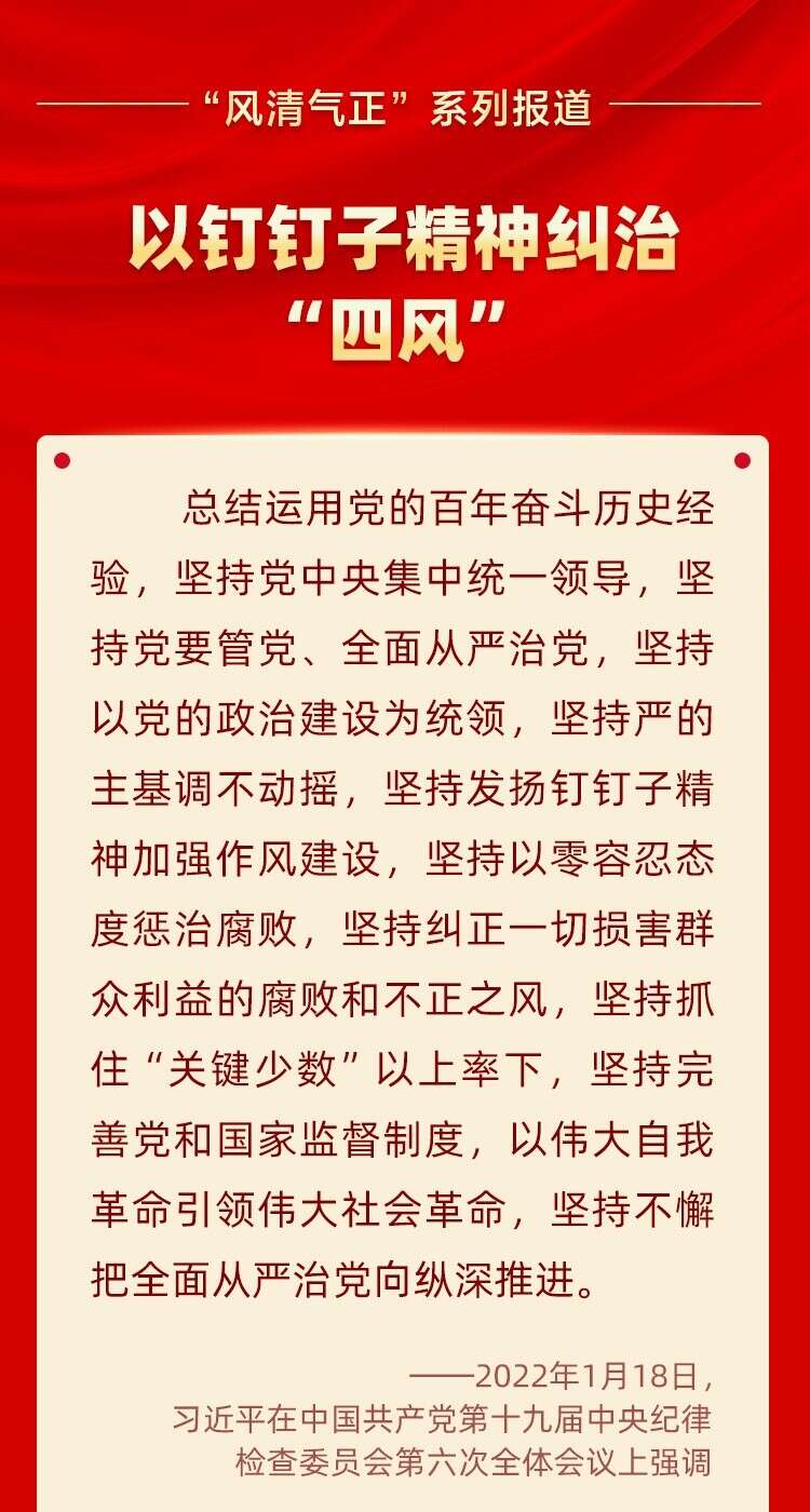 风清气正|“坚持发扬钉钉子精神加强作风建设”