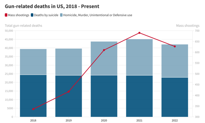 频繁发生的大规模枪击事件几乎遍及美国人生活的方方面面:2015年南卡罗来纳州查尔斯顿一座黑人教堂发生枪击,2016年佛罗里达州奥兰多一家夜店发生枪击,2017年佛罗里达州帕克兰市一所中学发生枪击,2018年宾夕法尼亚州匹兹堡一所犹太教堂发生枪击,2019年得克萨斯州埃尔帕索市一家沃尔玛超市发生枪击,2022年得克萨斯州尤瓦尔迪市罗布小学发生枪击……