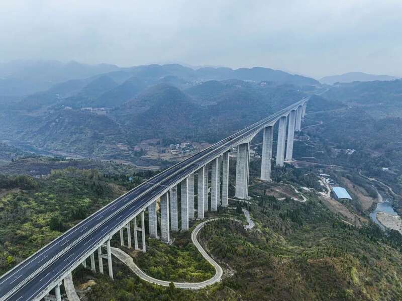 航拍贵州省黔西市永燊彝族苗族乡境内的仁望高速洱海河大桥。周训超摄(中经视觉)