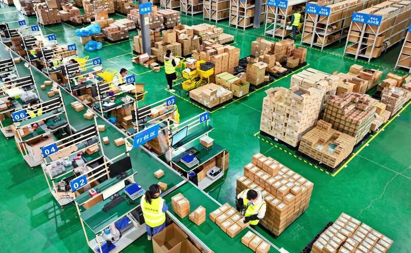 走进位于贵州省龙里县的贵州快递物流园,一派繁忙场景,货车往来穿梭,工作人员忙着清点货物、打包派送、核对订单。