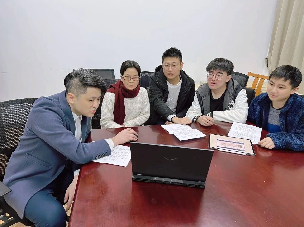 ı 陈伟婷副教授(左二)与王逸浩团队备赛中