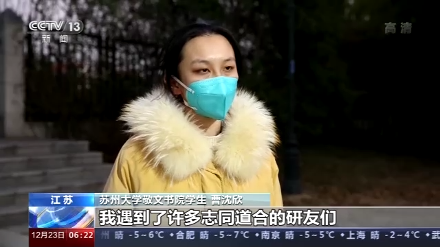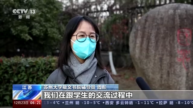苏州大学敬文书院辅导员 周彤:我们在跟学生的交流过程中,发现他们很多人反馈,很需要一个集体的复习氛围,在这种情况下我们开辟了线上的云端自习室,创造一个沉浸式的备考氛围,我们也请了各类导师来给同学们做专题的辅导,我们邀请了去年上岸(考上)的学长学姐,来给他们分享上岸的经验。同时我们也非常重视学生的保障服务,整体来说就是从营造考研氛围到细化考研的指导,再到保障备考服务上,我们尽量给学生创设一个好的学习环境和学习氛围。