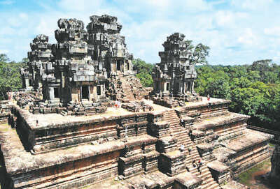 吴哥古迹王宫遗址占地面积约14公顷,分为4个院落,曾是吴哥王朝统治者居住的场所。二号院落中央坐落着一座庙山建筑——空中宫殿,至今它仍是柬埔寨人民心目中神圣的王家圣殿。