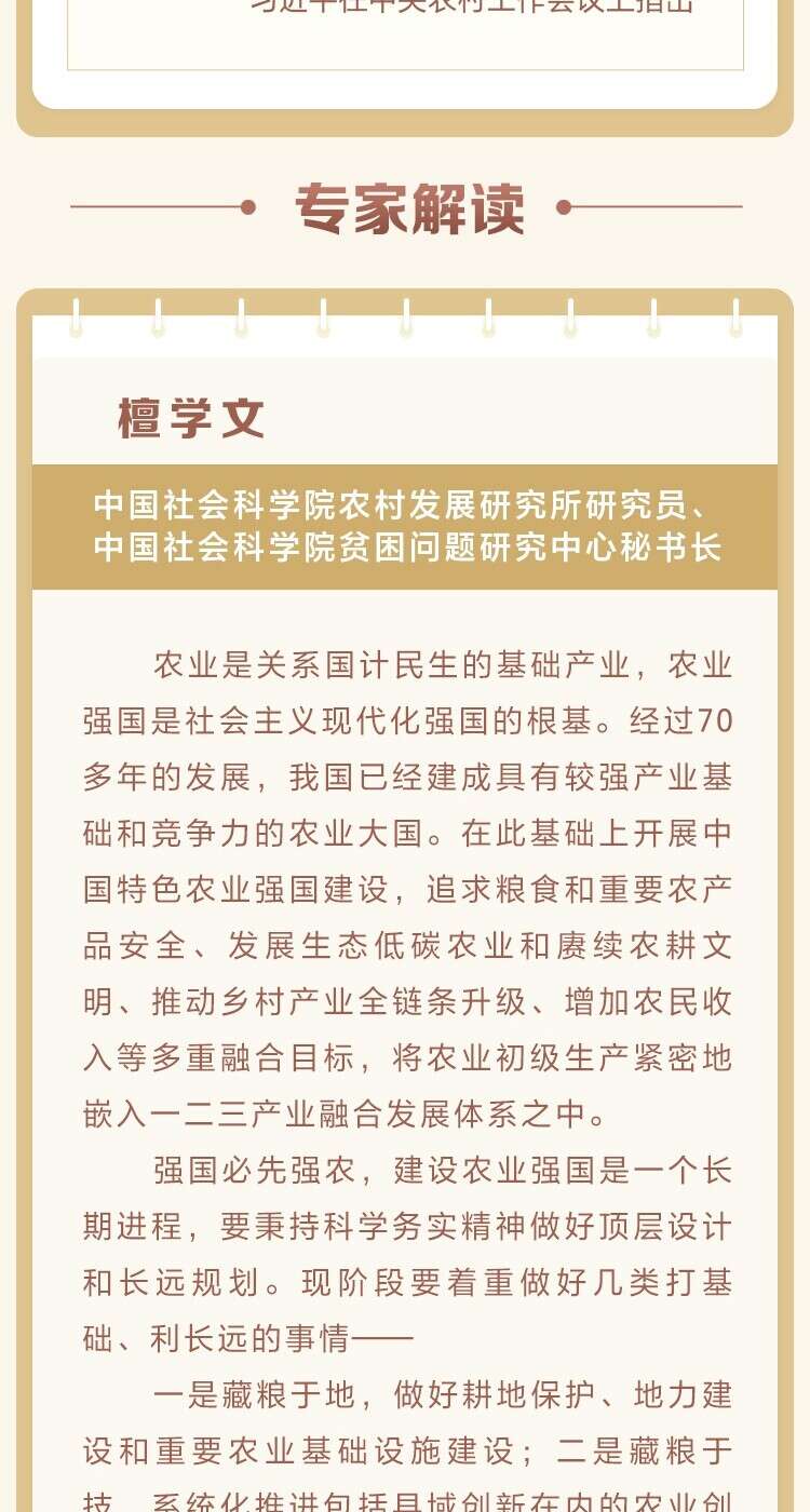 12月23日至24日,中央农村工作会议在北京举行。中共中央总书记、国家主席、中央军委主席习近平出席会议并发表重要讲话。人民网带您重温讲话要点并邀请专家进行解读。本期聚焦“建设农业强国”。