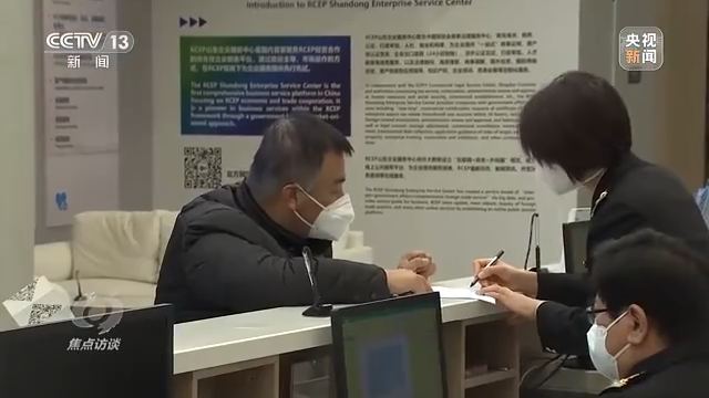 在位于青岛的RCEP山东企业服务中心,青岛某家居用品公司运营总监刘畅正在办理原产地证书。这家公司年出口额超过10亿元,90%的货物都是出口RCEP成员国。