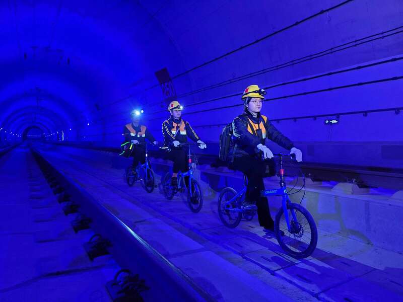 要在长、大隧道里检修作业,除了精湛的业务技能,还要有高超的骑行技术。由于夜间高铁停运的“天窗”时间有限,通信工们全靠一辆辆折叠自行车节省时间——一个作业组一个“天窗点”最多可以检修6公里高铁通信线路和设备,检修效率比徒步提升2倍多。