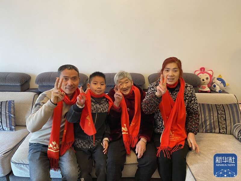 常玉凤一家人在家拍的全家福。(新华社发)