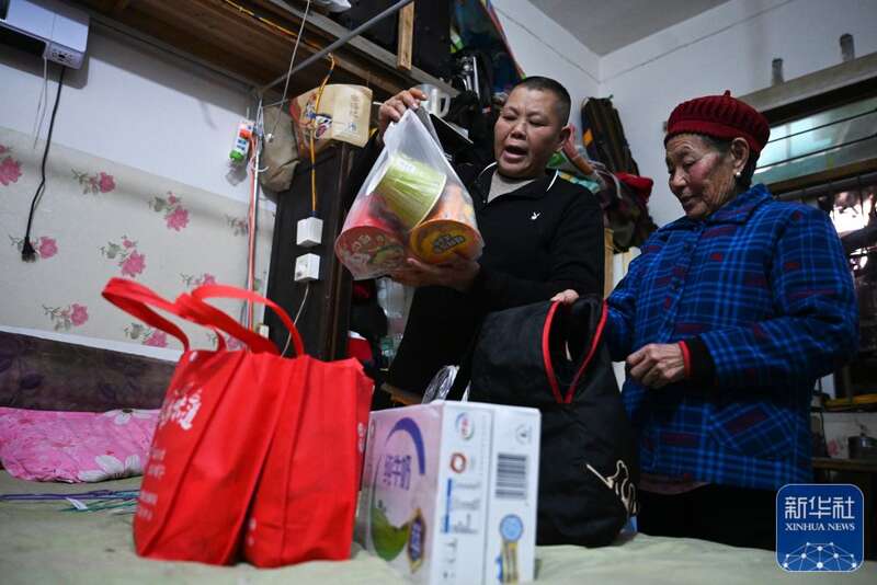 曾传富和母亲一起收拾返乡的东西。新华社记者 周义 摄