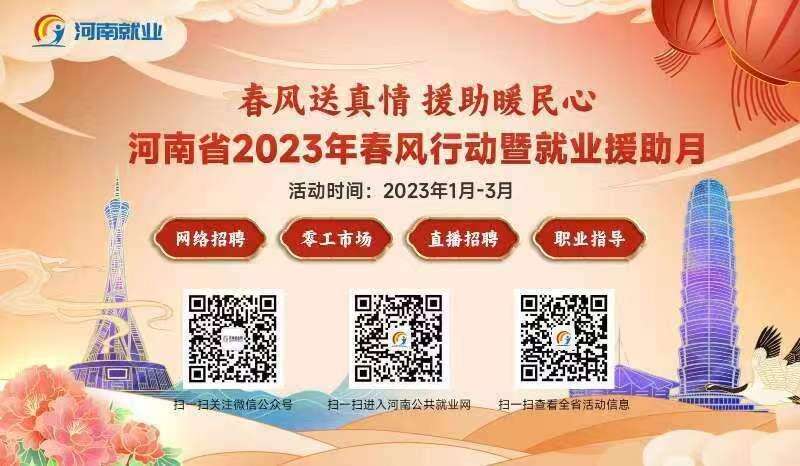 河南省通过“1+6省际劳务协作联盟”平台铺路、省级专场活动高位引领、“四进”就业援助服务保障、线下线上同步直播送岗、零工市场全省联动快招等形式,把就业春风送到群众身边。活动期间,计划组织1.6万家企业,举办2500场招聘活动,发布100万岗位。