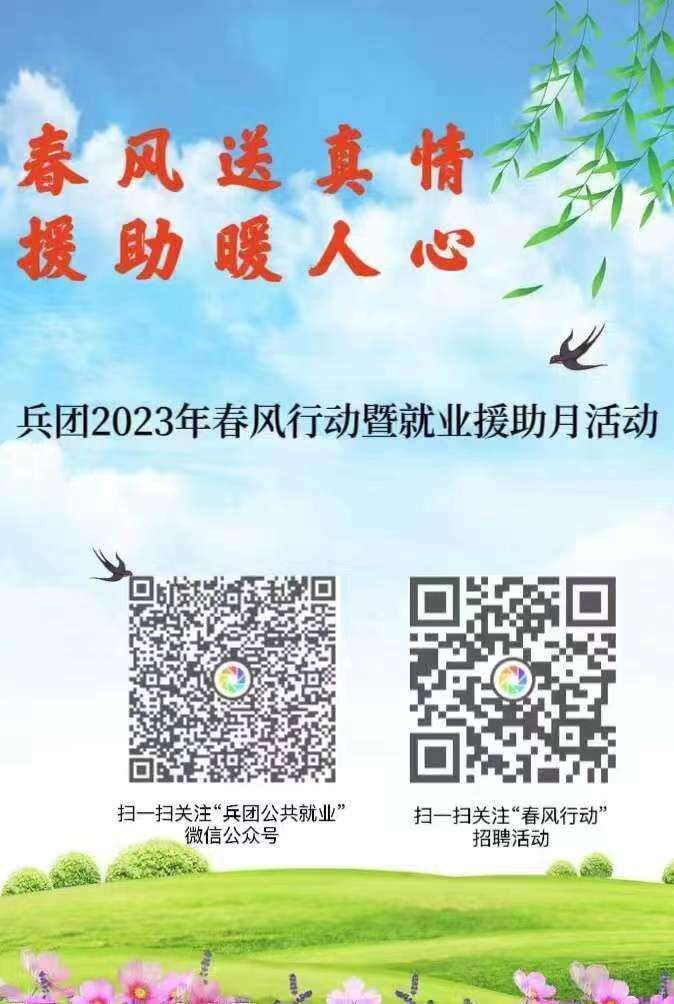 新疆生产建设兵团积极组织开展“就业访民情” 活动,动员“访惠聚”工作队、团场社会事务办等基层力量进连入户摸清就业需求,开展入户送岗,广泛征集更多就业岗位,开展高频次、小规模专场招聘活动,积极为企业用工搭建平台。春风行动暨就业援助月期间,预计将组织100余场线上线下招聘会。