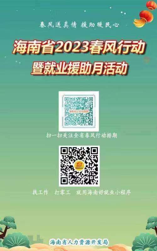 近日,人力资源社会保障部推出的2023年春风行动暨就业援助月活动正在各地火热开展。今年,多地还出现了直播带岗这一新的招聘会模式。人社部将及时发布各地的活动情况,送岗位到劳动者身边。大家可以通过扫描下方二维码,进入网站链接或微信小程序进行查看。