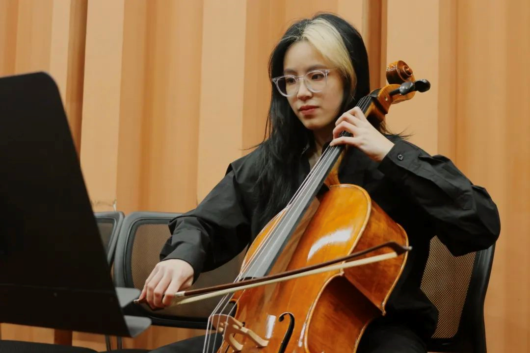 建筑与规划学院2020级本科生蒙拉正在演奏大提琴。