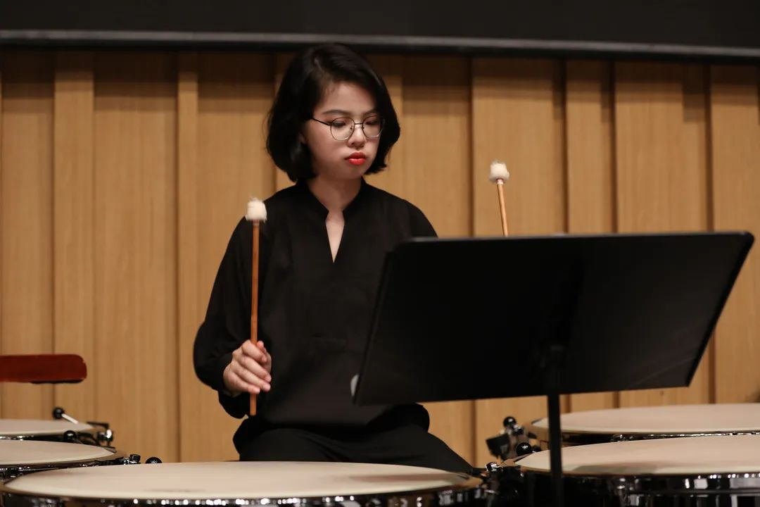 信息科学与工程学院2020级本科生于樱英正在演奏打击乐。