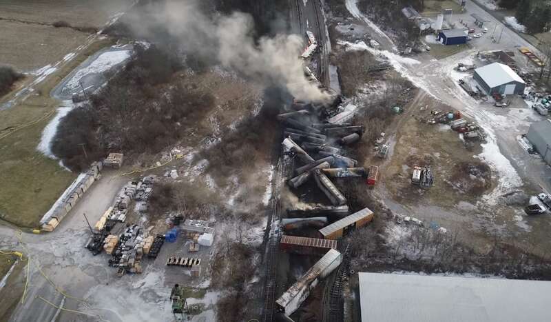 本月3日,诺福克南方公司一列货运列车驶经东巴勒斯坦镇时发生事故,共50节车厢脱轨或损坏;20节运载危险品的车厢中有11节脱轨,其中5节载有氯乙烯。应急人员6日以避免大规模爆炸为由,对脱轨氯乙烯罐车进行“受控释放”,燃烧产生的滚滚黑烟在东巴勒斯坦镇上空弥漫。