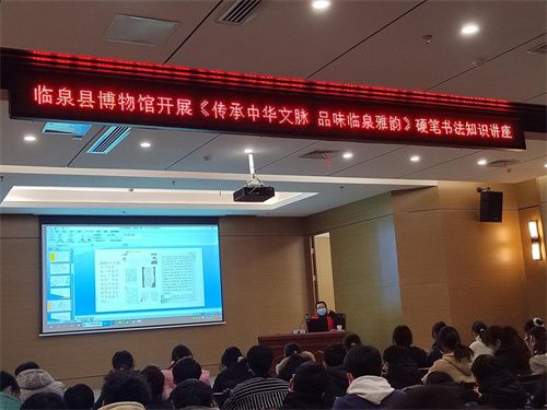 当天,临泉县博物馆联合临泉县青年志愿者协会关工委和县翰林硬笔书法培训中心开展“传承中华文脉· 品味临泉雅韵”硬笔书法公益讲座。秦翔先从同学们参观时看到的临泉县博物馆国家一级文物——秦量诏版讲起,介绍记录汉语符号的汉字从商朝的甲骨文开始成为成熟文字系统的过程。他还结合学生平时作业、答卷中出现的问题和近年来指导学生硬笔书法作品创作的具体实例,从“正确、工整、布局和速度”4个方面,详述了在作文格、单线格和空白纸上规范书写硬笔汉字的要领,并现场解答提问。