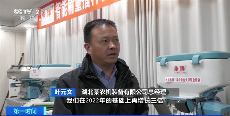 湖北某农机装备有限公司总经理 叶元文:预计2023年,我们在2022年的基础上再增长三倍,完成1.3亿元的销售额。