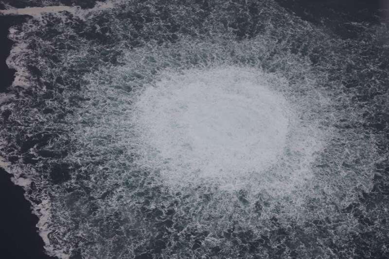 这张丹麦国防部2022年9月27日发布的航拍照片显示的是一处“北溪”天然气管道泄漏点。新华社发(丹麦国防部供图)