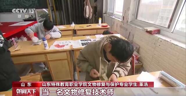 山东特殊教育职业学院2021级文物修复与保护专业学生 董浩:我将来想去北京故宫当一名文物修复技术师,因为我特别喜欢中国的传统优秀文化,我想通过在学校里面学习的手艺,能更好地去发展守护我们中国的历史文化。