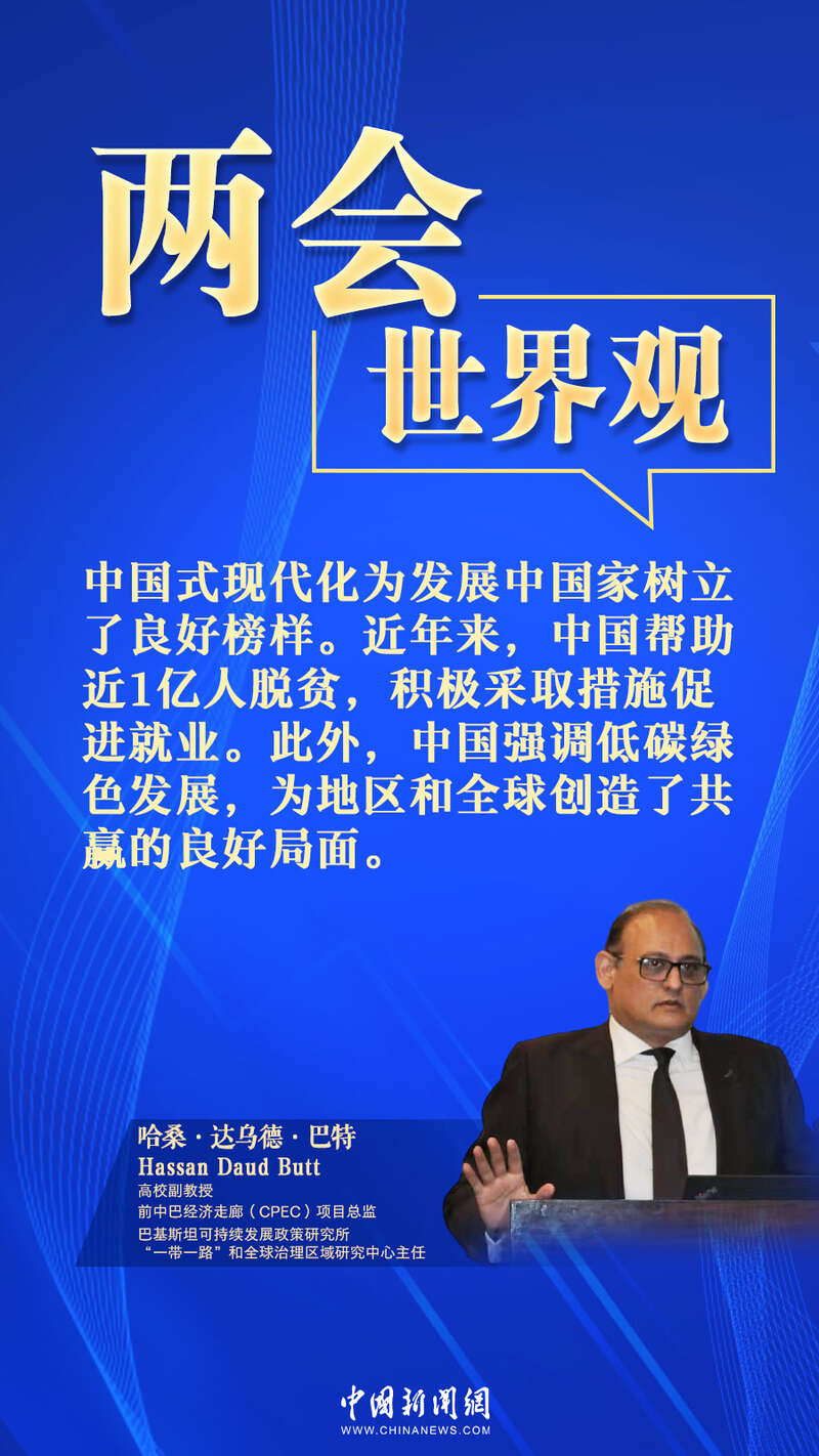 中新网北京3月14日电 (陈彩霞)2023年全国两会持续吸引全球目光。作为投资领域专家,“中巴经济走廊”前项目主任、巴基斯坦可持续发展政策研究所“一带一路”和全球治理区域研究中心主任哈桑·达乌德·巴特(Hassan Daud Butt)近日在接受中新网专访时,高度赞赏中国经济强势复苏给“一带一路”沿线国家带来的机遇,并对中国刺激消费、中国式发展道路及绿色能源转型等,予以肯定。