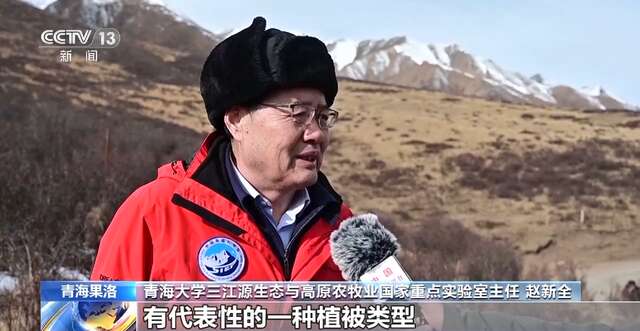青海大学三江源生态与高原农牧业国家重点实验室主任 赵新全:从目前看,这一片是青藏高原有代表性的一种植被类型,因为植被保护得相对比较好,这个地区这么多年来生物量是一个增加的过程,尤其近十年,所以说草地的承载力可能在范围之内。因为这里是阿尼玛卿自然保护区的核心区,同时也是传统的牧民草场,所以我们也关注这个地区的家养动物和野生动物的平衡,现在高兴的是,我们看到的野生动物比较多,有食草动物,像马鹿昨天看到了;今天这个山上的岩羊也不少,同时对面有一群牦牛。从这个角度看的话,家养动物跟野生动物能够和谐共存。