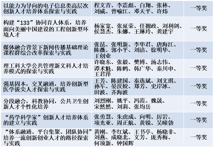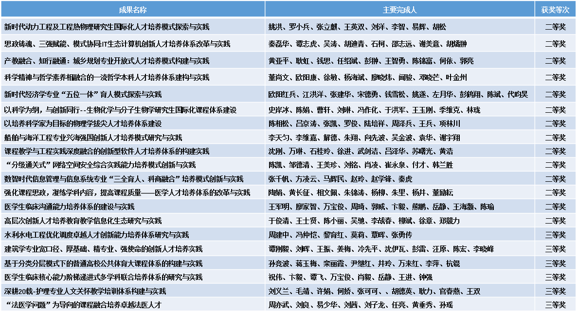 第九届湖北省高等学校教学成果奖名单公布