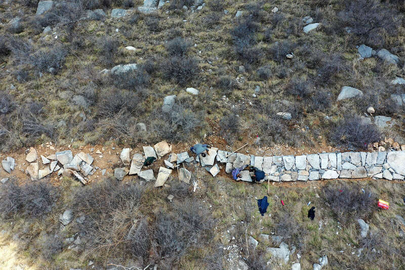 村民们在山西省壶关县大峡谷镇青龙峡村山上修路(3月8日摄,无人机照片)。