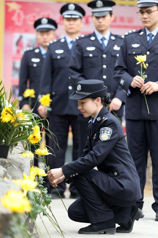 中国青年报客户端讯(通讯员 郑永波 中青报·中青网记者 何春中)清明期间,江苏省连云港市公安局开发区分局组织部分民警代表来到驻地烈士纪念馆,通过聆听烈士英雄事迹、向烈士献花、重温入党誓词、在“祭奠先烈,缅怀先辈”牌上签名等方式缅怀革命先烈。