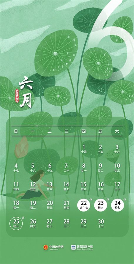 6月22日至24日放假调休