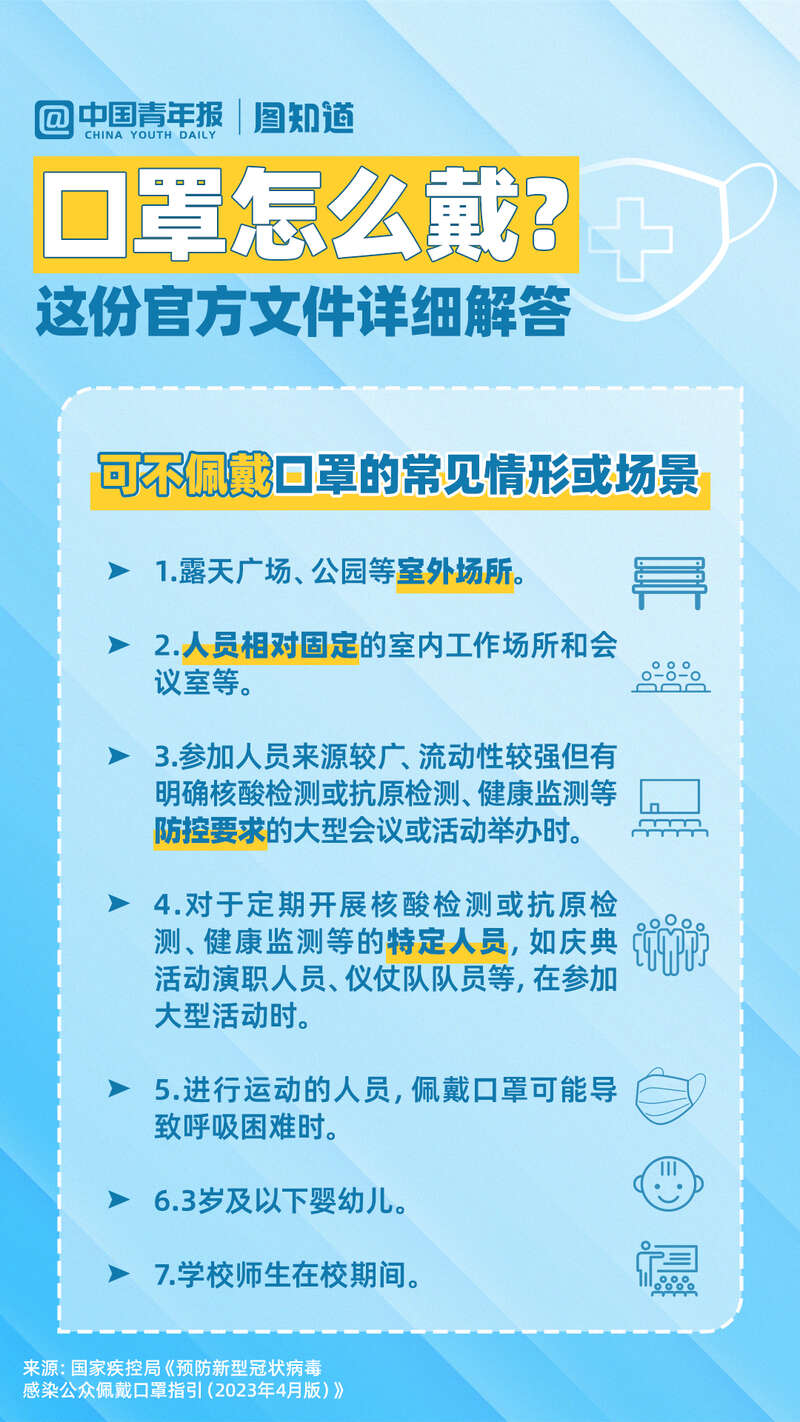 当前我国新冠疫情总体处于局部零星散发状态,但全球疫情仍在流行,病毒毒株还在不断变异,我国仍存在疫情反弹的风险。根据我国疫情形势和防控需要,在前五版佩戴口罩指引基础上,国家疾控局组织制定了《预防新型冠状病毒感染公众佩戴口罩指引(2023年4月版)》,指导公众科学规范佩戴口罩。
