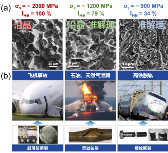 习近平总书记强调,要健全风险防范化解机制,坚持从源头上防范化解重大安全风险,真正把问题解决在萌芽之时、成灾之前。在新时代背景下,为确保机械、航天、电子等行业钢铁材料的安全性和可靠性,钢材的强度与抗氢脆性能需要达到更高标准。然而,无论是在冶炼、轧制、热处理、焊接、电镀等生产制备过程中,还是在储运、服役等工程应用环节中,高强钢的氢脆问题始终是制约其发展应用的重要瓶颈。一般而言,强度越高,氢脆敏感性也越大。同时,脆性断裂也是工程构件中最危险的一种失效方式,它是因氢进入金属后,局部氢浓度达到饱和引起金属塑性下降,导致结构提前失效。脆性断裂的无规律突发性,可能会引发灾难性的事故,造成巨大人员伤亡和经济损失。