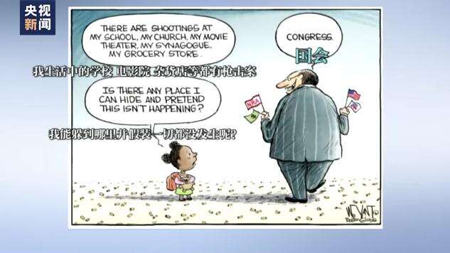 据《今日美国》网站22日报道,对于枪击案频发,美国政客漠不关心,不愿通过枪支立法做出改变,即便美国民众正在丧命。正如美国政治漫画网站的这张漫画讽刺的那样——漫画中,有孩子问:“我生活中的学校、电影院、杂货店等都有枪击案,我能躲到哪里并假装一切都没发生呢?”一名大人回答他:“国会。”