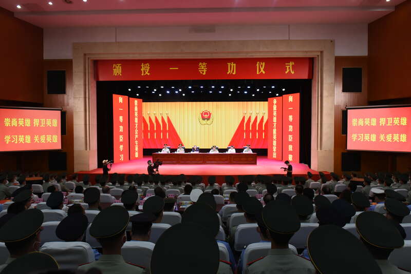 中国海警局为2名执法员举行颁授一等功仪式现场。江子波/摄
