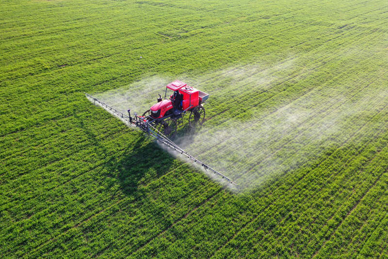 安徽省蒙城县双涧镇农民为小麦喷洒防治病虫害药物(无人机照片)新华社发(胡卫国摄)