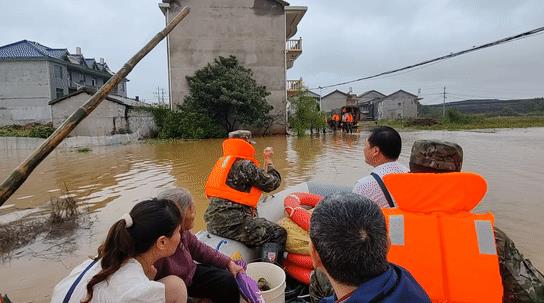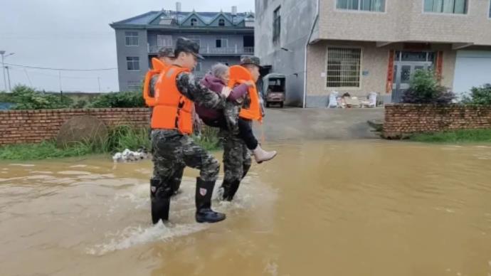 5月5日至6日,江西抚州多个乡镇遭遇特大暴雨。强降雨导致河水猛涨、农田被淹,出现了大规模城镇内涝。武警江西总队抚州支队官兵迅速集结,携带救援装备赶往抚州市宜黄县梨溪镇、崇仁县六家桥乡等地展开救援。